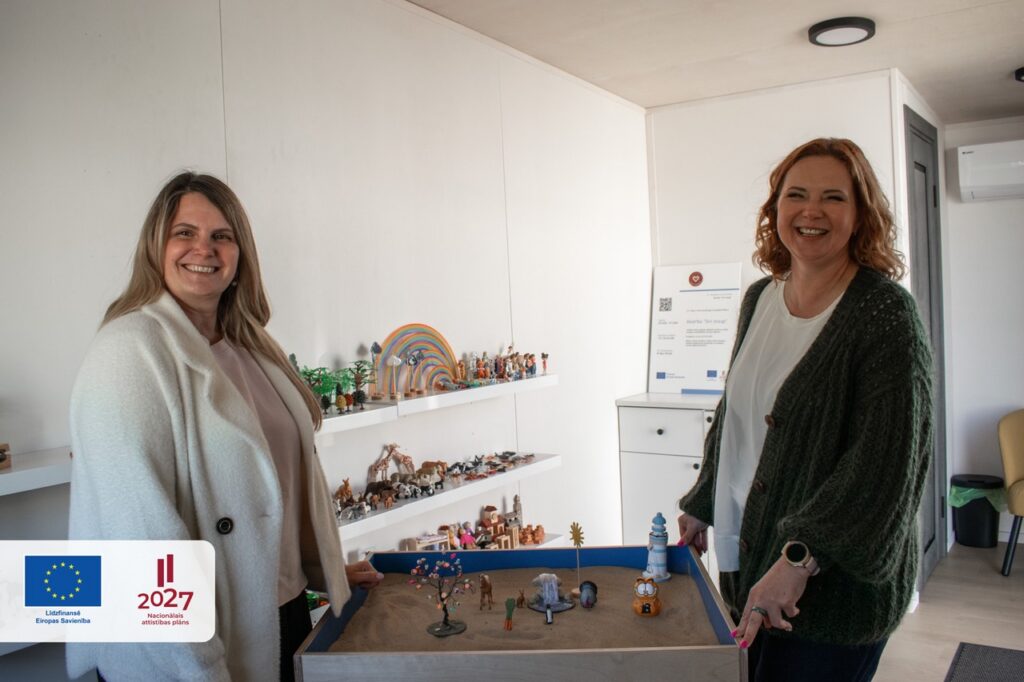 Projekts “Mobilā smilšu terapijas kabineta izveide un smilšu terapijas nodrošināšana Latvijas reģionos” tiek īstenots par “Eiropas Sociālā fonda Plus” (ESF+) un valsts budžeta līdzekļiem pasākuma “Atbalsta instrumentu izstrāde un ieviešana ģimenes funkcionalitātes stiprināšanai” laikā.