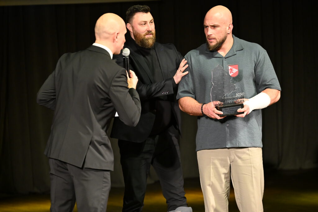 Tomēr sports nav tikai rezultātu tabulas. To veido arī cilvēki, kuri ikdienā stāv aiz aizkulisēm – treneri, organizatori, entuziasti. Tieši tādēļ Dienvidkurzemes novada Sporta pārvalde pateicības balvas piešķīra tiem, kuri ar savu darbu veido sporta vidi: Edgars Stonis par volejbola un Dunalkas pagasts vārda popularizēšanu, Elīna Medene un Anna Rungovska par aktīva dzīvesveida iedvesmošanu, Imants Trinkūns par vēsturiskās loka šaušanas kustības attīstību, kā arī Ainārs Pāvils par jauniešu sagatavošanu Latvijas U-18 handbola izlase un profesionālajiem sasniegumiem trenera darbā.