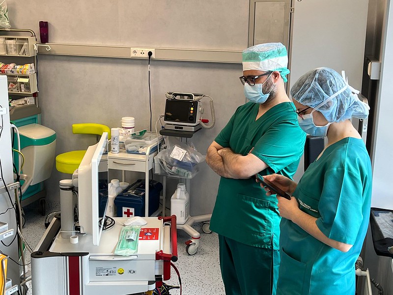 Operāciju veica neiroķirurģe Dolgopolova kopā ar neiroķirurģijas rezidentu Kristapu Rancānu un operāciju māsu Kristīni Jermakovu.