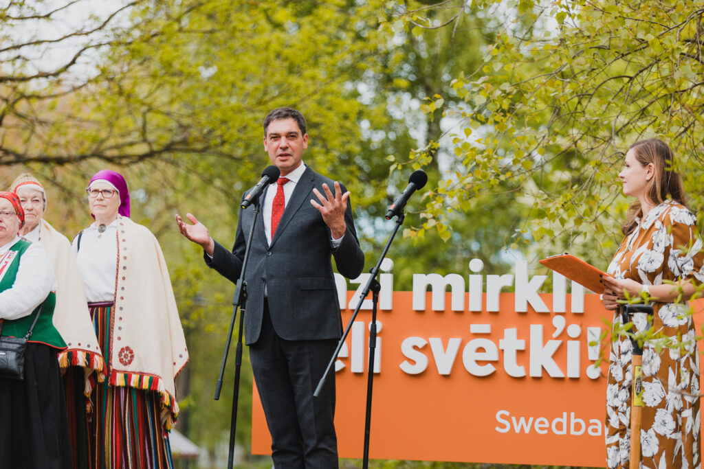 “Viss lielais, skaistais, iespaidīgais top no maziem mirkļiem, pieredzēm, soļiem un darbiem. Arī Dziesmusvētki un Latvija. Lielo kopības sajūtu Dziesmusvētkos un spēcīgo tradīciju, kas spējusi izturēt laika un likteņa pārbaudi, veido katrs no mums, katrs smaids un asara, ikviena balss un solis. Jau pavisam drīz Dziesmu un deju svētki atkal izplauks pilnā krāšņumā, un mēs kā ilggadēji tradīcijas atbalstītāji no sirds ceram, ka arī ziedošie “Dziesmusvētki” krāšņos Latvijas pilsētas un Dziesmu svētku tradīcijas 150gadi,” saka “Swedbank Latvija” vadības komandas pārstāve Agnese Garda.
