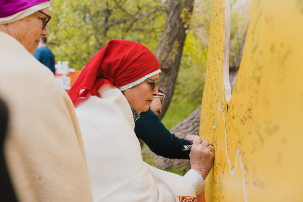 Evas Johansones vadītajā pasākumā piedalījās XXVII Vispārējo latviešu Dziesmu un XVII Deju svētku dalībnieki no Liepājas – Liepājas Tautas mākslas un kultūras centra Folkloras kopa “Vēlava” (vadītāja Vija Laipniece) un Ieva Tālberga ar muzikālo apvienību “GAN GAN”. Pasākumā klātesošajiem bija iespēja ierakstīt savu dzimto vietu Lielajā Dziesmusvētku sienā – ceļojošā Latvijas kartē, iemūžinot svētku dalībnieku izcelsmes vietu daudzveidību un kopā aužot simbolisku Dziesmusvētku ģeogrāfijas rakstu. Savu dzimto vietu Siguldu kartē atzīmēja arī Izglītības un zinātnes ministre Anda Čakša, kas bija ieradusies vizītē Liepājā.