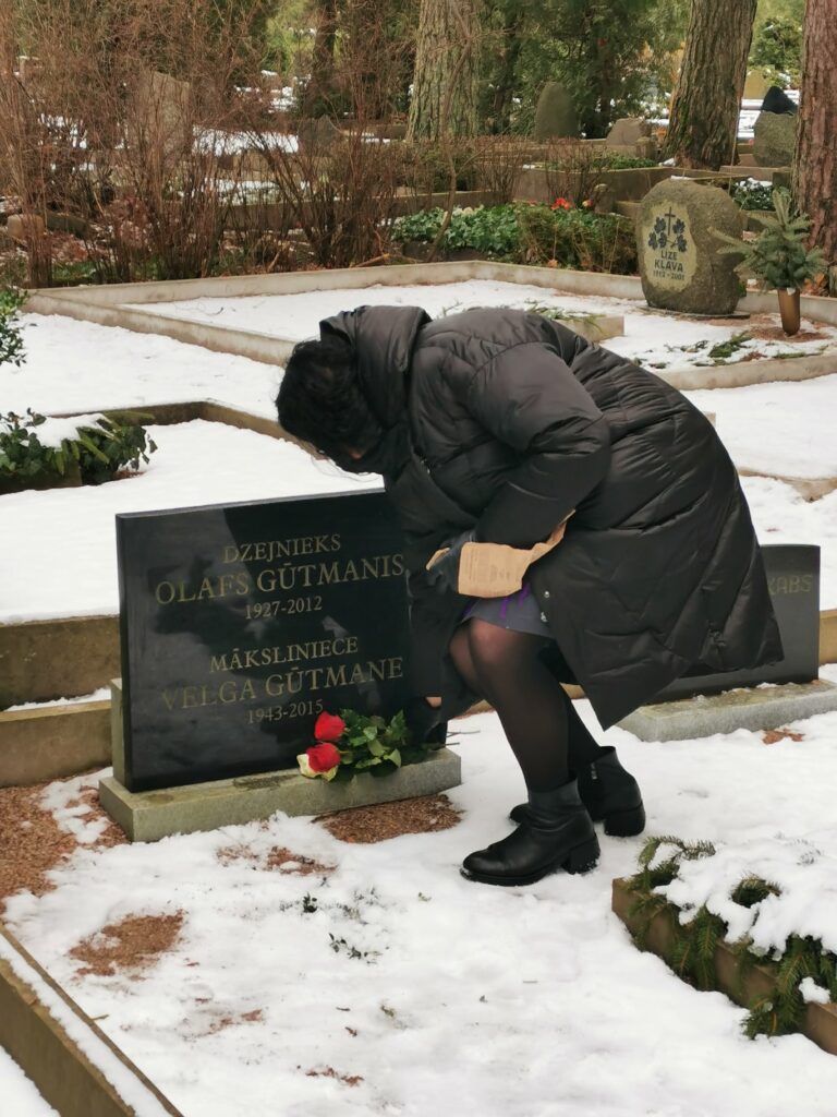 Pieminot dzejnieka, rakstnieka, Latvijas Tautas frontes Liepājas nodaļas priekšsēdētāja un Goda liepājnieka Olafa Gūtmaņa 95 gadu jubileju, šodien Liepājas Centrālajā kapsētā pie dzejnieka atdusas vietas pulcējās Liepājas muzeja pārstāvji un bijušie tautfrontieši.