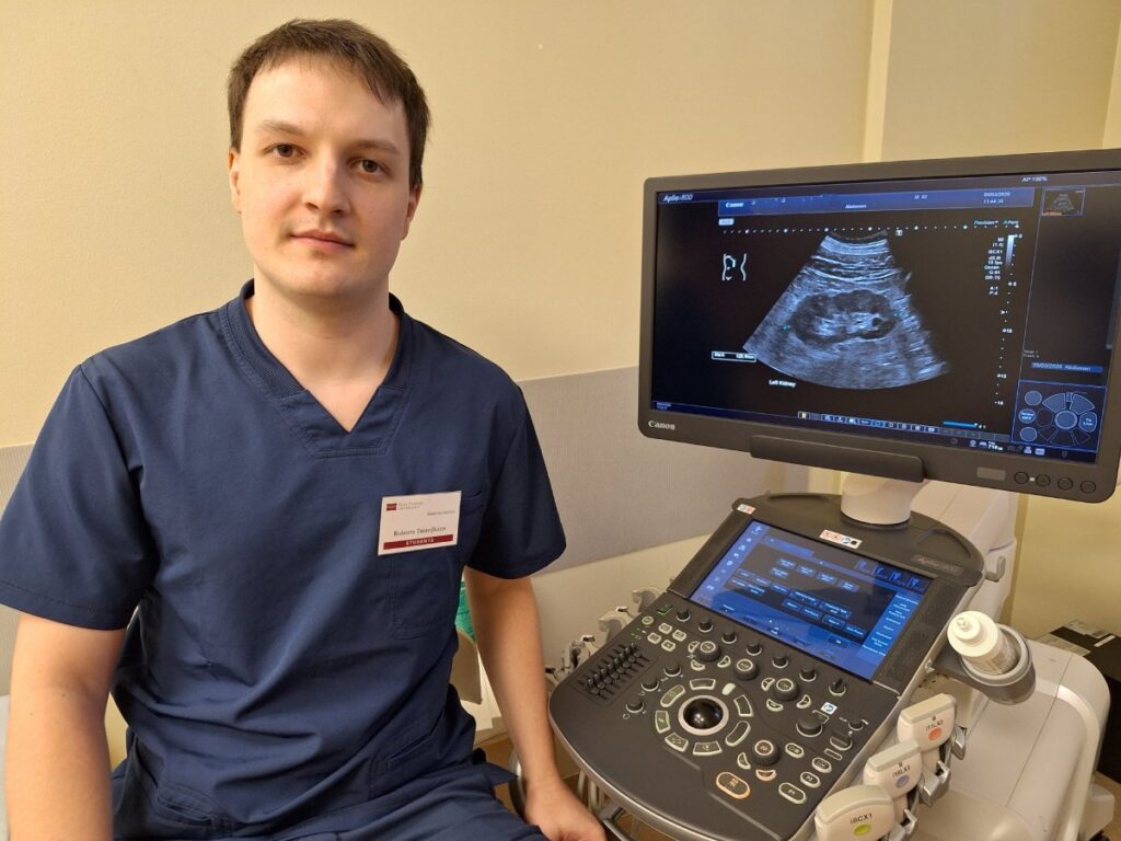 Radioloģijā praksi aizvada Roberts Tumeļkāns no Aizkraukles, kurš jau izlēmis, ka rezidentūrā izvēlēsies šo specialitāti. “Man vienmēr ir paticis darboties ar jaunākajām tehnoloģijām un datorizētām sistēmām. Radioloģijā ir ļoti plašs diagnožu spektrs, un katra diena var atnest ko jaunu,” viņš stāsta. Par praksi Liepājā Roberts saka: “Par slimnīcu no citiem studentiem biju dzirdējis tikai labas atsauksmes, un arī mana pieredze ir ļoti pozitīva – kolektīvs ir laipns un atsaucīgs, telpas un aprīkojums moderns. Noteikti ieteiktu šo slimnīcu gan praksei, gan rezidentūrai.”